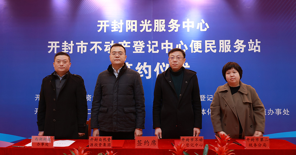 2024年1月18日,开封市不动产登记中心便民服务站签约仪式在开封市汉兴路开封日报社一楼隆重举行。此次签约仪式旨在进一步深化“放管服”改革,优化营商环境,高效便民惠企,积极实施不动产登记+党建、不动产登记+民生“延伸服务”,打通不动产登记服务企业和群众“最后一公里”。