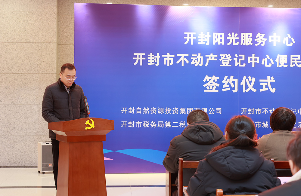 开封自然资源投资集团有限公司总经理李凯发表了致欢迎词,对各位嘉宾的到来表示热烈欢迎,并表示将以此次签约为契机,进一步深化合作,共同推动不动产登记工作的高效开展。