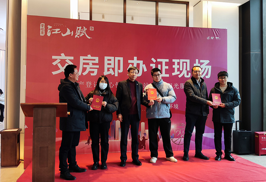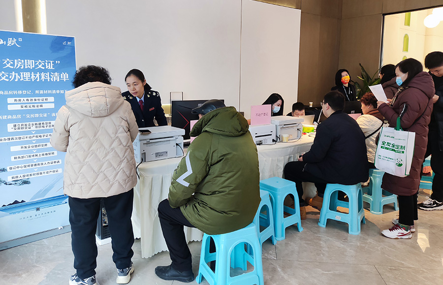 在活动现场,业主们享受“交房即交证”服务。他们在拿到房屋钥匙的同时,也领到了属于自己的不动产权证书。这一创新服务模式不仅简化了购房流程,缩短了证时间,还为购房者提供了更加便捷、高效的服务体验。