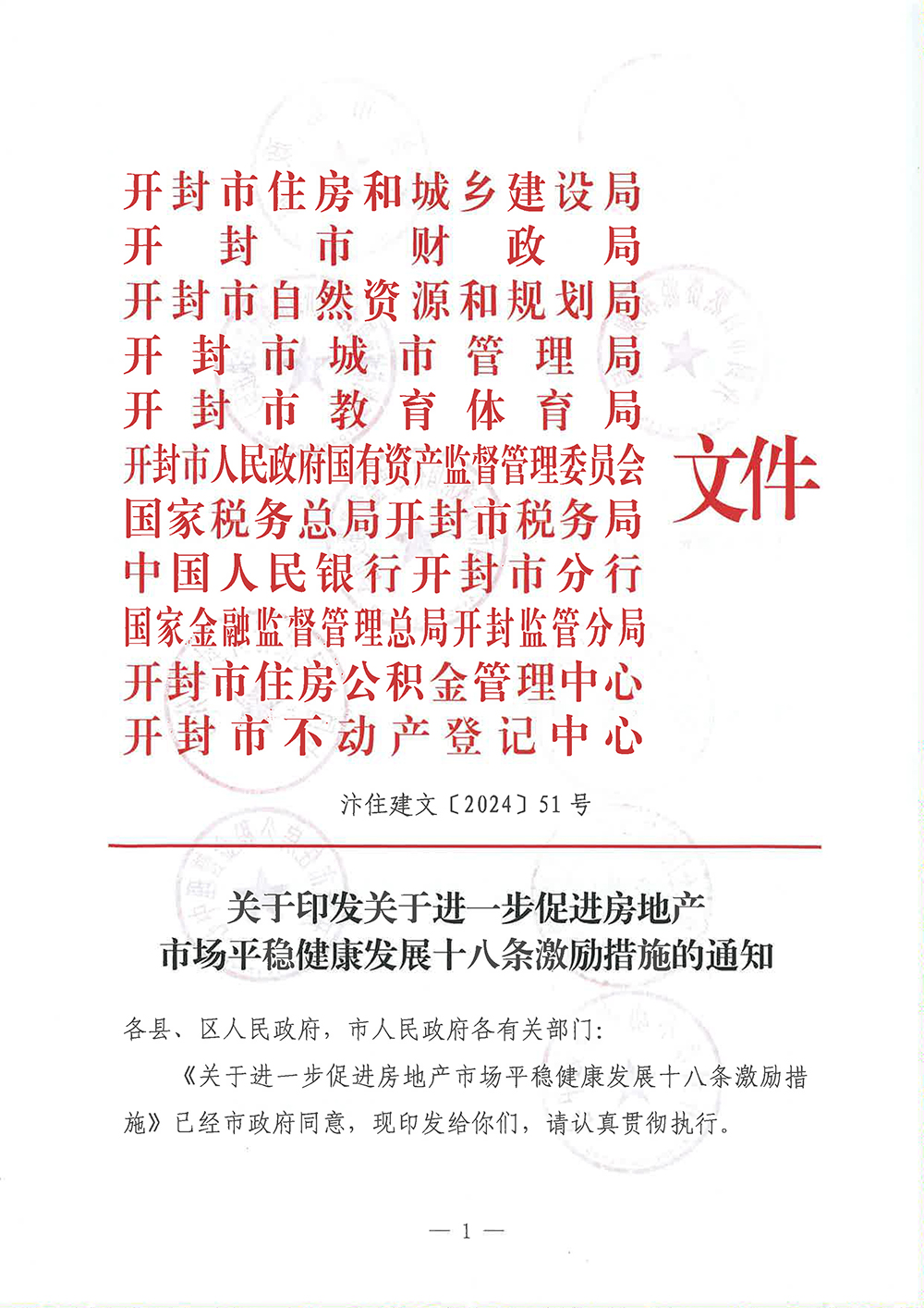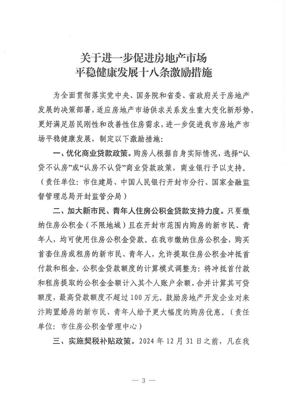 开封市《关于进一步促进房地产市场平稳健康发展十八条激励措施》