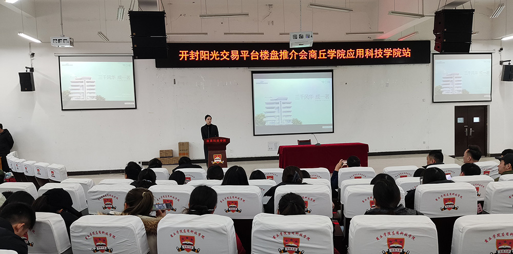 为积极响应国家关于优化营商环境的号召,进一步促进地方经济稳健发展,着力提升高校教师生活品质,开封智慧数字产业投资集团有限公司(以下简称“智投公司”)旗下开封阳光交易平台于2025年1月7日在开封市复兴大道商丘学院报告厅成功举办楼盘推介会。本次活动聚焦“城发·三千著”、“绿城·春江明月”、“海洋·幸福里”及“西景佳苑”四大精品楼盘,通过提供优质的居住选择和专属购房优惠,为高校教师打造更加舒适的生活环境,同时助力开封市营商环境的持续优化。